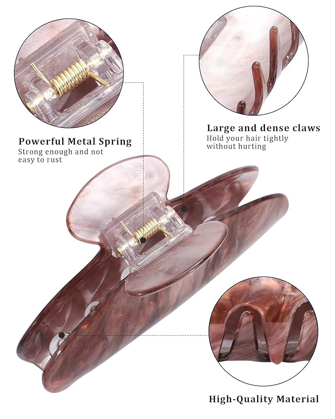 - 【ELEVATE UR LOOK】We’ve got 3 types of claw clips,translucent spotted, marble and glitter.What's more important is that each hair clip has undergone strict quality testing to ensure safe use and no harm to hair.Choosing our hair clips means choosing different confidence and beauty. Let our handmade hair clips accompany you through every beautiful moment