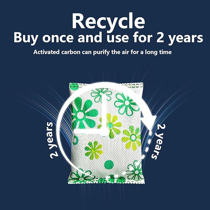 - Reusable for 2 years:These activated bamboo charcoal bags can be used for up to 2 years, simply place them in the sun for 2 hours every 2 months. This process releases all trapped moisture and odours. Once the charge is complete, you will be left with a brand new activated charcoal odour absorber bag