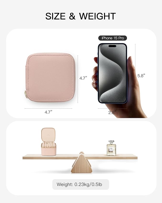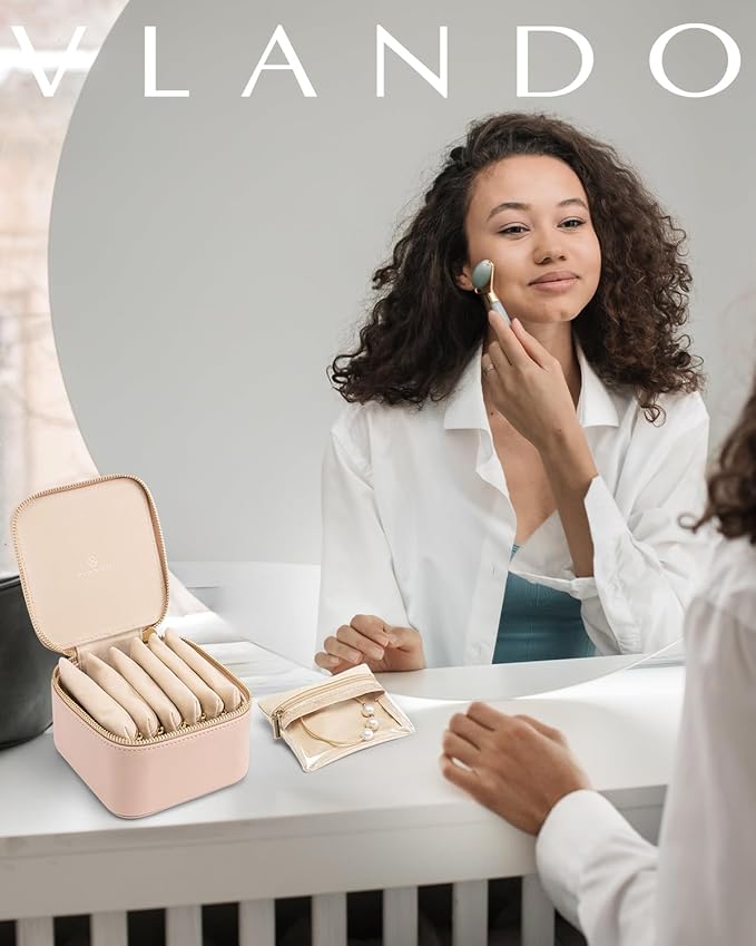 Vlando Small Jewelry Box Organizer,Travel Jewelry Storage with 6 Velvet Jewelry Zipper Pockets,Travel Jewelry Case Birthday Gifts for Women Girls(Khaki)