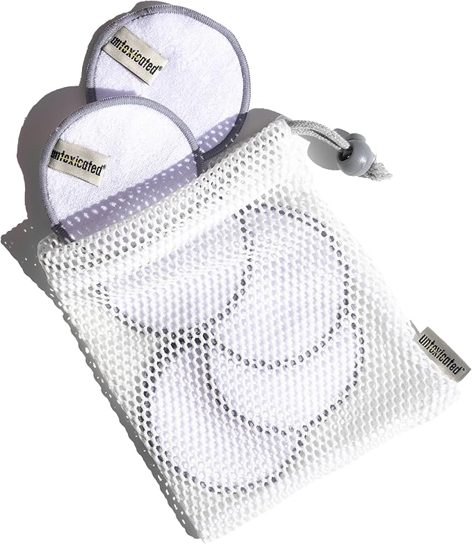 Untoxicated Ultra Soft Cleansing Pads - Double-Layered Reusable Bamboo Terry Rounds - Makeup Removal & Skincare for Sensitive Skin - Soft & Durable - Includes Washable Storage Bag - 10CT
