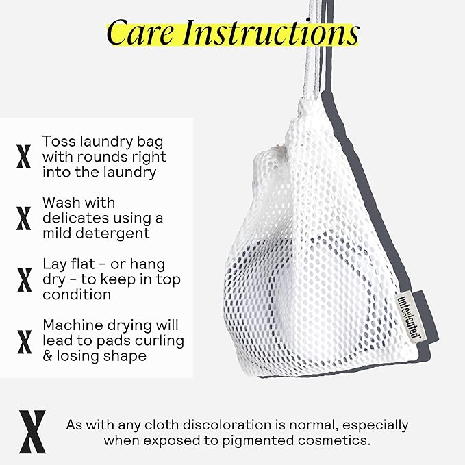 - [DURABLE & REUSABLE] Absorbent rounds that hold up wash after wash without fraying or pilling. Simply toss dirty rounds into the provided laundry bag, wash with a mild detergent, and lay flat to dry.