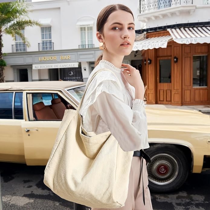 - 【MULTI-PURPOSE】: Large corduroy purse is foldable, very suitable for giving to women as a shoulder bag, shopping bag, tote bag, grocery bag, casual travel bag, picnic bag, camping bag, holiday bag, every day bag. This tote handbags can as a gift for family,friends or teacher on Birthday,Anniversary,Mother's Day,Thanksgiving,Christmas and all other celebrations.