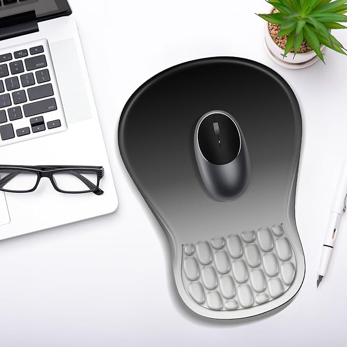 - PREMIUM MEMORY FOAM MOUSEPAD: High-quality memory foam wrist support slowly returns to shape after use, ensuring long-lasting comfort. The ergonomic mouse pad design prevents wrist fatigue and promotes healthy computing habits for office workers, gamers, and students.
