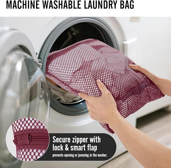 - Versatile Laundry Bag: Made with breathable mesh, the included laundry bag doubles as a washing bag—suitable for tossing straight into the washing machine. A smart zipper guard keeps it securely closed during cycles, reducing fabric tangling and wear to extend the life of your clothes.