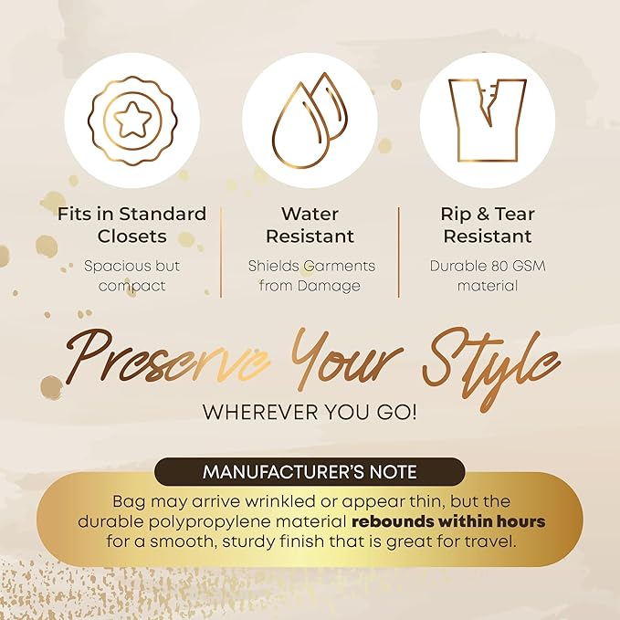 - WRINKLE-FREE TRAVEL & STORAGE - Lightweight gown garment bag for long dresses with a dual zipper, hanging loop, and ID window. Use it as a prom dress bag, bridal dress bag, or wedding dress bag for traveling so your dress stays clean and free from wrinkles and creases.