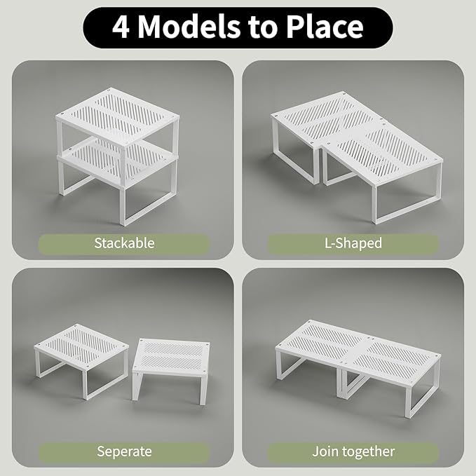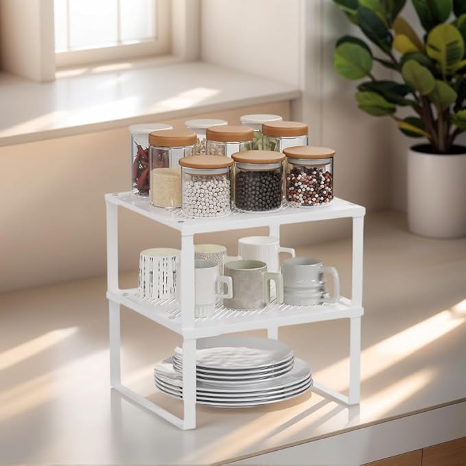 - 【Flexible Storage Solutions】 Whether You Place The Stackable Kitchen Shelf Racks On The Countertop As A Convenient Spice Rack, Stack Them To Maximize Cabinet Space, Or Bring Order To Your Pantry, These Kitchen Cabinet Shelf Organizers Offer Versatile Storage Options For Every Need