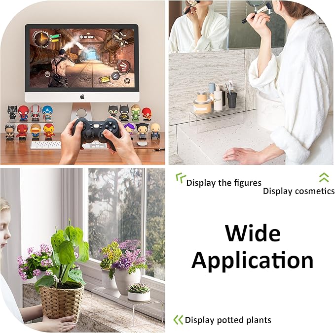 - Wide Application for The Acrylic Risers: The acrylic display risers can be used for so many items display. It can be used for Amiibo Funko Pop Figures collectibles, toys organizer, cupcake stand, plants for your home or party. It can be used for displaying perfumes, cosmetics, bags, shoes, sun glasses, jewelrys, wallets in retails or vendors.