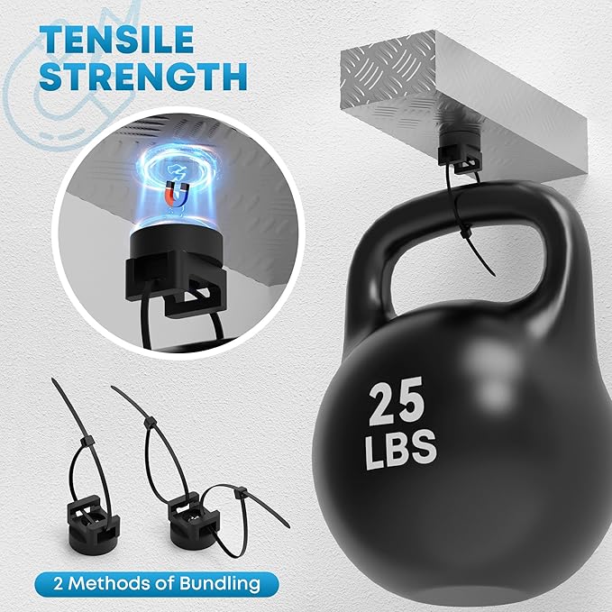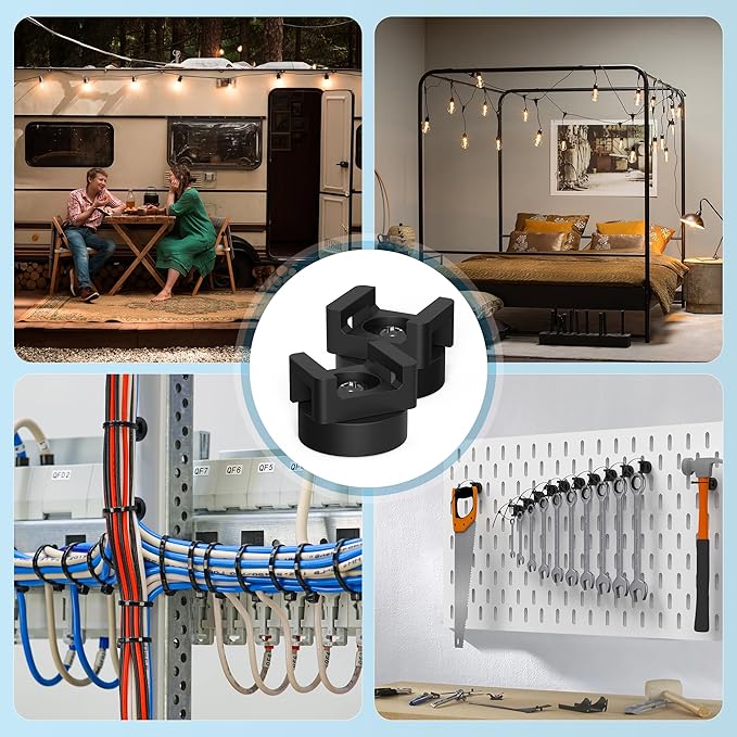 - [Wider Application] This magnetic zip tie mount heavy duty can be flexibly applied in numerous settings, including home interior decoration, holiday decorations, cable management, desk organization, lighting fixtures, garage organization, car, and more. Its adaptability greatly enhances both the convenience of daily life and the efficiency of work environments