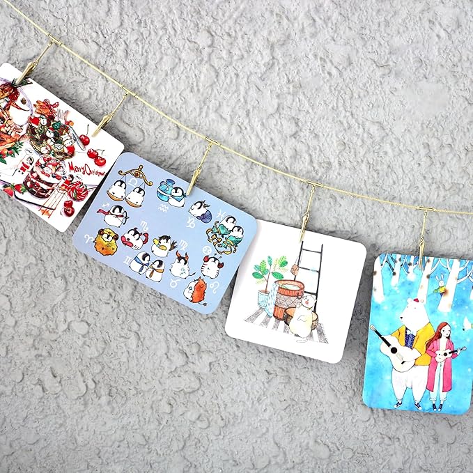 - 【Multi-Use Wall Photo Display】Transform any space with our Chain Photo Clip! Good for organizing family photos, displaying kids' artwork, hanging lightweight tools in in studios, etc. 12 metal clips hold securely without slipping - Good for home, office, classroom decor that evolves with your memories.