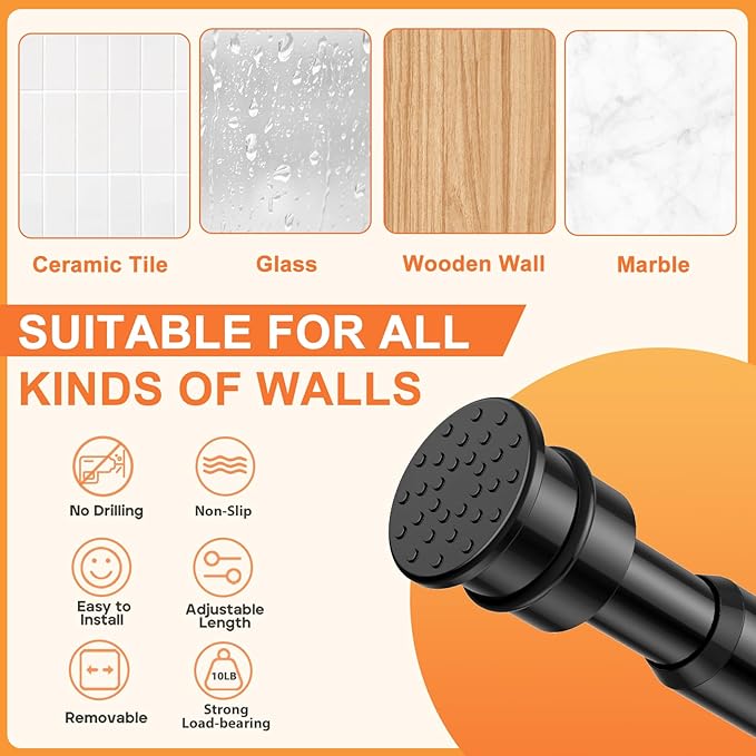 - 【Lightweight & Easy Install 】The adjustable curtain rod tension design makes setup effortless. Use as a small tension rod for lightweight curtains or RV refrigerator tension rods.