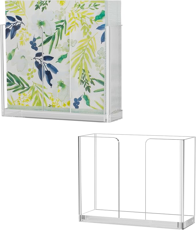 - 【Easy to Use】Easy to pull one napkin out without dist.urbing the other hand towels in the acrylic tray, easy to add napkins. You can either gently wipe the paper towel holder clean with a damp rag after use, or you can rinse it off with water and leave it to air dry before using it again.