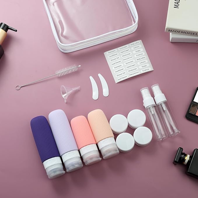 16 Pack Travel Bottles Set, TSA Approved Leak Proof Silicone Squeezable Containers for Toiletries, Refillable Travel Accessories for Conditioner, Shampoo, Lotion & Body Wash Accessories