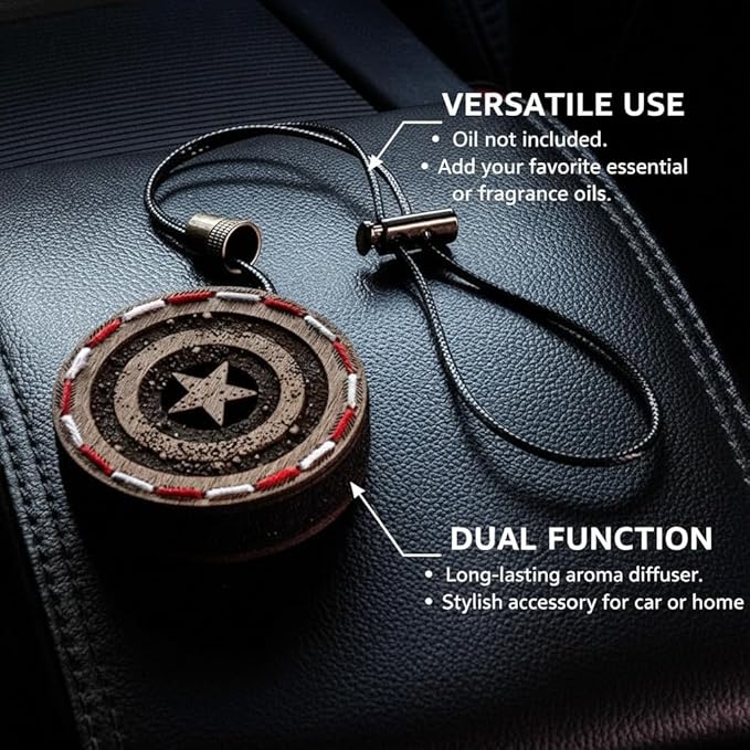 Wood Car Air Freshener — Captain Shield Handmade Unscented DIY Essential Oil Hanging Diffuser with Felt Insert — Add Your Own Oils — Refillable — Car/Truck/SUV — Cardboard Box