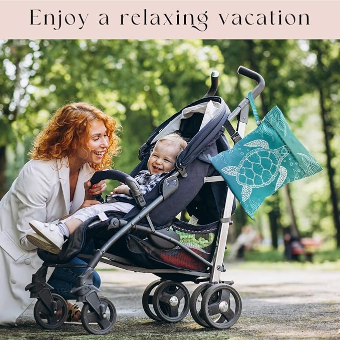 - ๐ ENOUGH SPACE โYou will get 1 wet bag, the size is approx.: 10.2" x 12.6". Comes with a handle so that you can easily pick the bag up or hang it. Each can hold approximately 5 cloth diapers. They are light weight, easy to carry, swimsuit bag, Beach essentials.