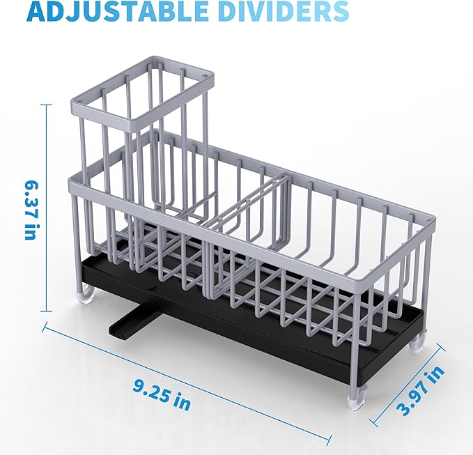 Cisily Light Gray Sponge Holder for Kitchen Sink, Sink Caddy Organizer with High Brush Holder, Kitchen Countertop Organizers and Storage Essentials, Rustproof 304 Stainless Steel, Soap Dispenser