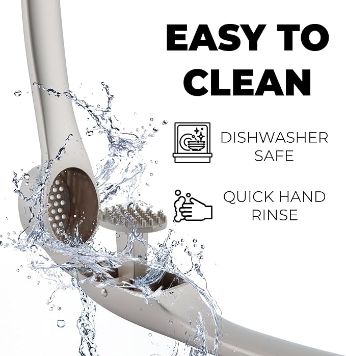 - EASY TO CLEAN: Rinse under running water or place in the dishwasher for quick cleanup. Includes a cleaning brush to remove residue and keep your garlic chopper ready to use.