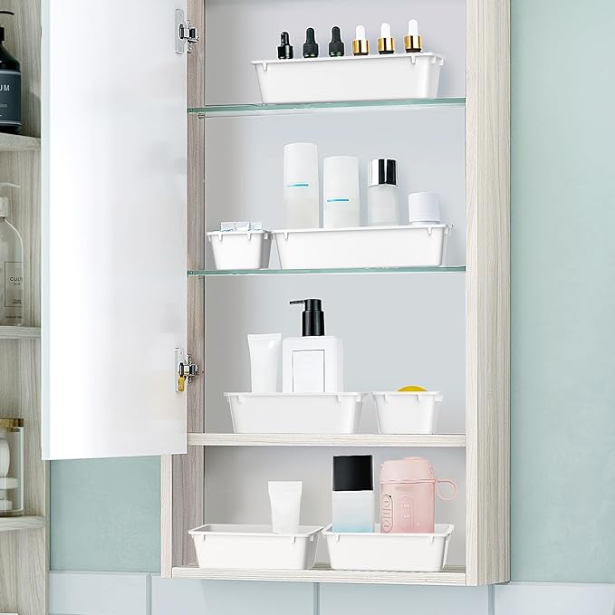 - 4 Combinations of Different Sizes: A set of cabinet organizer includes 25 storage bins of 4 different sizes. Includes: 9 x 6 x 1.8 inches (3pcs), 9 x 3x 1.8 inches(6pcs), 6 x 3 x 1.8 inches(8pcs), 3 x 3 x 1.8 inches(8pcs)