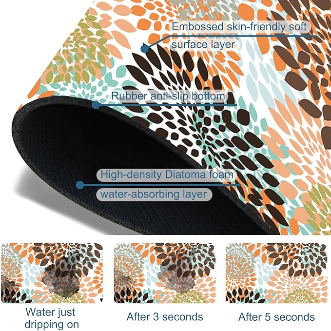 - Super Absorbent Material: This Sink Splash Guard Faucet Mat is made of high-quality absorbent diatom mud, which can instantly absorb splashing water like a giant sponge, preventing water accumulation and keeping your countertop dry and clean