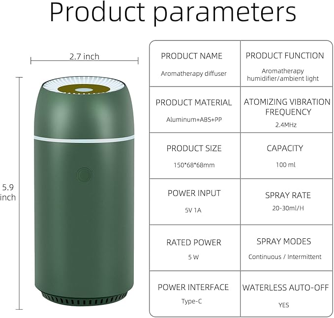 - PORTABLE & COMPACT:The car aromatherapy diffuser adopts a mini portable design, with a high-end aluminum alloy body and Type-C interface, which can easily plug into the car's USB port or portable power bank, enabling you to use it anytime and anywhere. Whether it's short commutes or long-distance road trips, car diffusers can enable you to enjoy aromatherapy and pleasant fragrances.