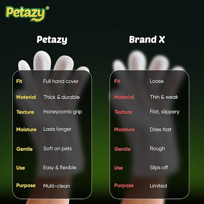 - TOUGH, EXTRA-THICK DESIGN - Durable gloves resist tearing. Deep-clean mud, dirt, and odor in one swipe. Stress-free grooming for messy or active pets.