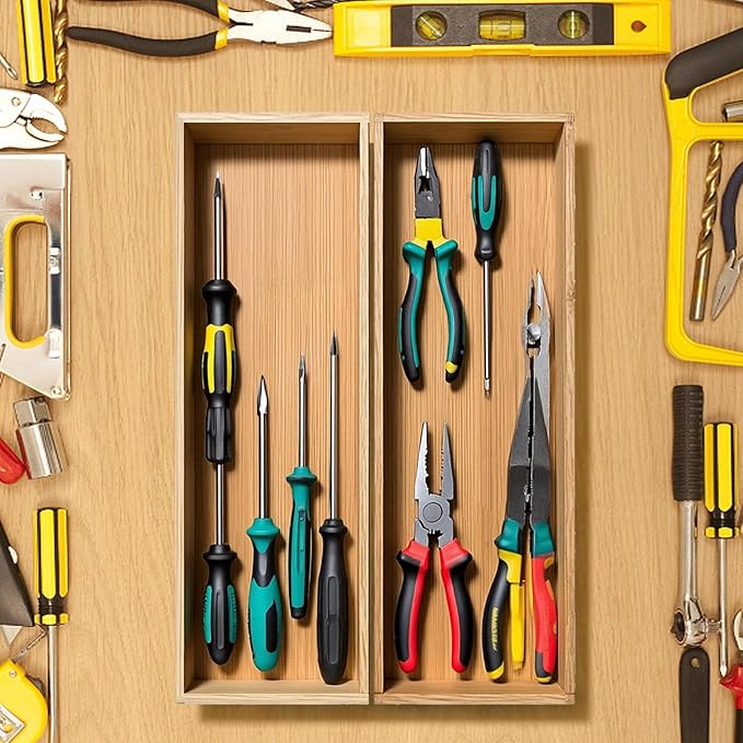 - Sturdy & Durable: Our bamboo silverware drawer organizer made of 100% thickened bamboo boards, all the places where the boards are joined are reinforced for added durability and strength and will not fall apart into several pieces, durable to last for years.