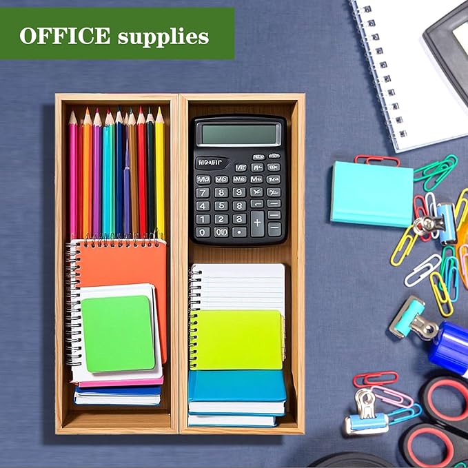 Bamboo Drawer Silverware Organizer, Silverware Tray, Flatware Organizer, Bamboo Storage Box Suitable for Office, Bathroom and other objects storage (9.85"x3.55"x1.78"- Set of 2)