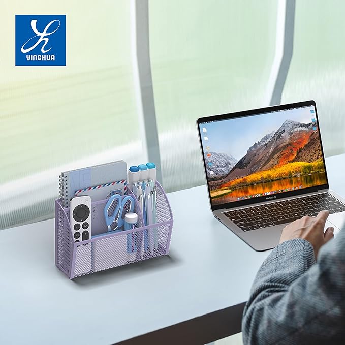 - Strong Magnetic Grip for Multi-Surface Use – This Purple 3-compartment metal mesh desk organizer securely attaches to whiteboards, refrigerators, lockers, and other magnetic surfaces with its powerful built-in magnets. The sturdy hold keeps your pens, pencils, and small essentials in place while freeing up desk space. Perfect as a pen holder for desk, office organizer, or classroom pencil holder