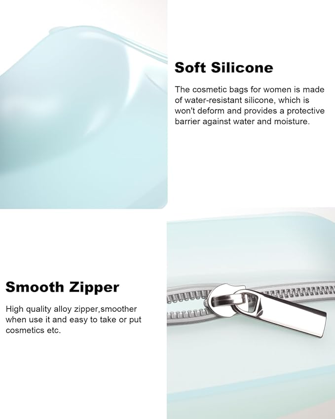 - Waterproof and Easy to Clean: The cosmetic bags for women is made of water-resistant silicone, which is won't deform and provides a protective barrier against water and moisture. Only need wiped clean with a damp cloth to keep your travel bags neat and clean. Together with the beautiful stitches and smooth zippers, is durable for long-lasting use