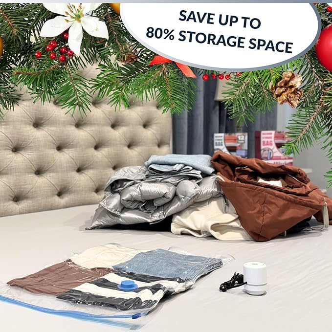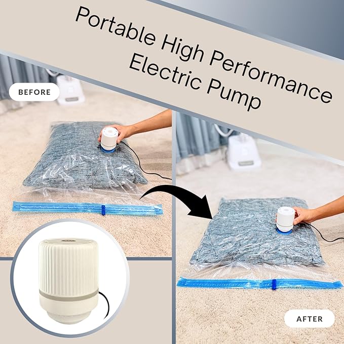 12 Pack Vacuum Storage Bags with Electric Pump, Compression Space Saver for Comforters, Bedding, Blanket Storage, Vacuum Seal Bags for Clothing, Luggage and Closet Organizer,