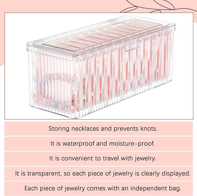 - Elegant Design: our jewelry organizer boasts a clear design for aesthetic appeal and artistic charm; The transparency of the box gives you immediate visibility of your jewelry, making it easy to find and choose what you want to wear