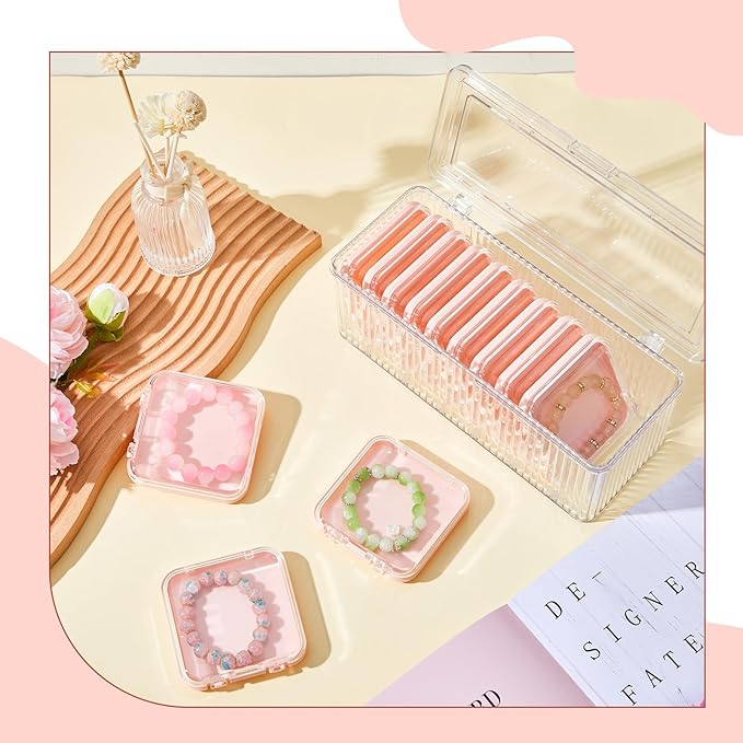 1 Pack Acrylic Bracelet Jewelry Storage Box with 12 Portable Anti Tarnish Organizers for Earrings/ring/necklace (Pink)