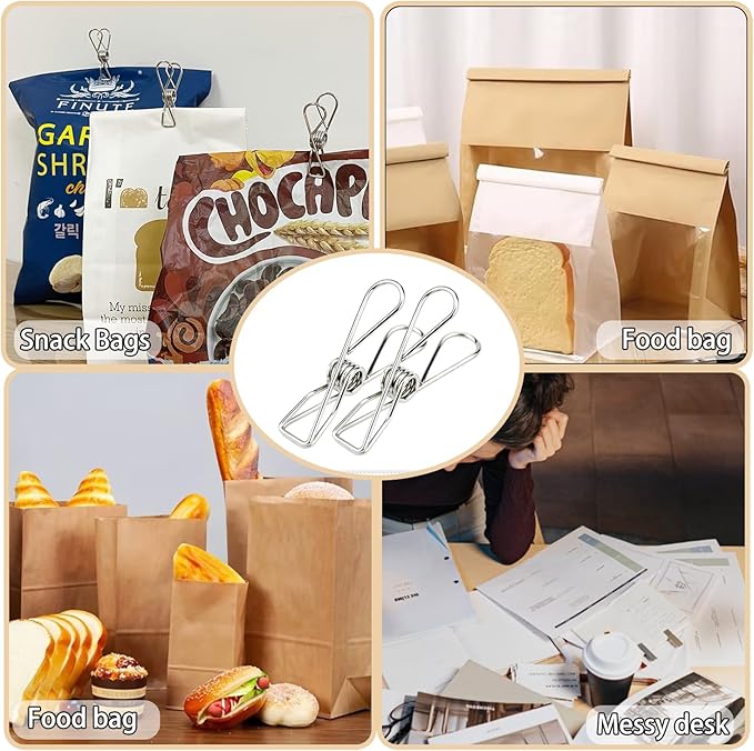 - Durable & Rustproof: Clothes Pegs Chip Clips are made of stainless steel . Sturdy and stable, not easy to break, long service life, more practical than plastic or wooden clothespins.