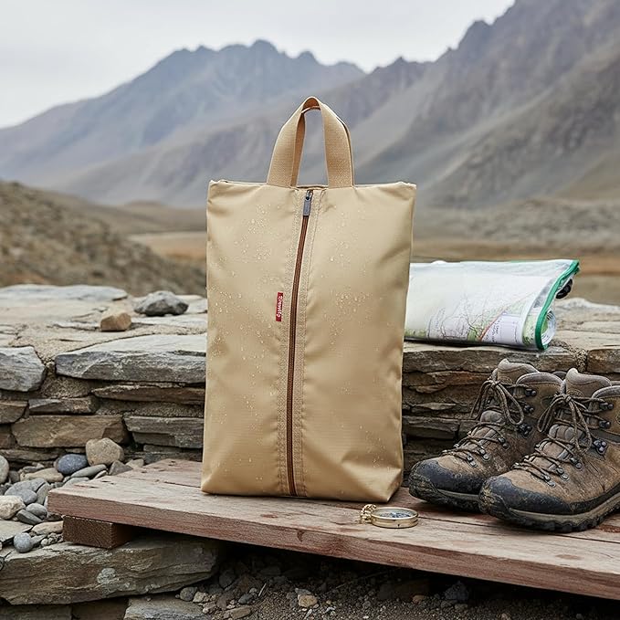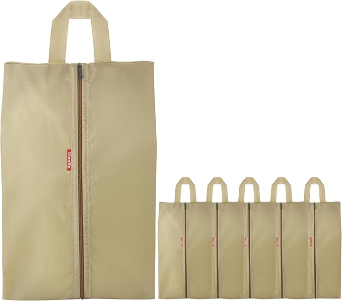 6pcs Portable Shoe Organizer, Travel Pouches with Zipper, Golf Shoe Bags, Clothes Bags, Soccer Cleats Bag Shoe Pouch for Gym, Waterproof, Odor-Resistant (Khaki)