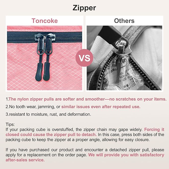 - Durable Built with Travel-Tested Zippers – We upgraded to reinforced, snag-free zippers and double-stitched seams to solve the common failure issue. These cubes are built to withstand overstuffing and frequent use, trip after trip.