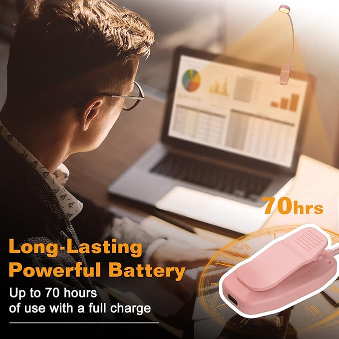 - Rechargeable: Charging the KTEBO reading lamp is a breeze, and once fully charged, it can last for up to 30 hours. Say goodbye to buying batteries and contributing to environmental pollution. (Type-C Charging cable included)