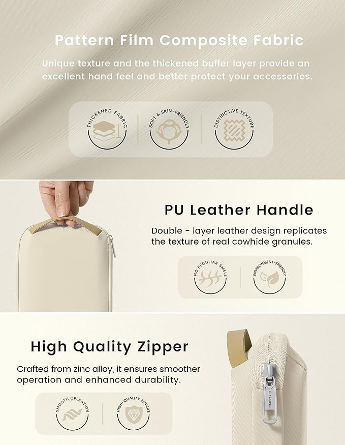 • Durable and lightweight tech case organizer: This small electronics organizer is crafted from high-quality polyester material that is scratch-resistant and lightweight. Besides, it features a sleek surface, offering a smooth tactile sensation