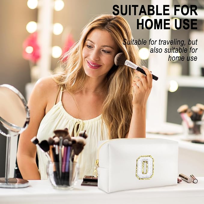 Gifts for Girls Initial Makeup Bag Personalized Cosmetic Bag with Zipper Cute Travel Toiletry Bags Waterproof PU Preppy Makeup Pouch Birthday Gift for Teen Girls Women(White O)