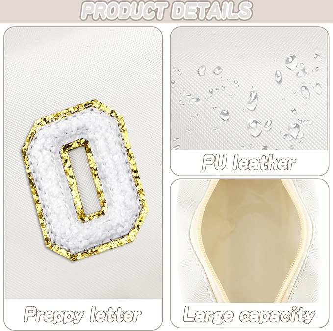 - LIGHT WEIGHT AND EXCELLENT WORKMANSHIP: The initial preppy makeup bag is made of soft PU leather and is comfortable, soft and lightweight. Makeup pouch folds up when not in use and fits in a large bag without taking up space. The metal zipper pull keep your items secure and organized inside.Chenille letter pouch for women girls