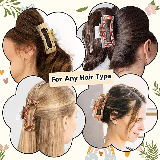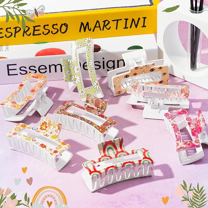 - BOHO FLORAL HAIR CLAW CLIPS: Brighten every day with our 8 different designs floral claw clips, featuring multi color retro flower and rainbow patterns, perfect for adding a touch of cute to your look on daily life