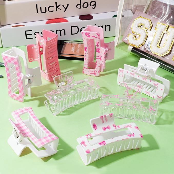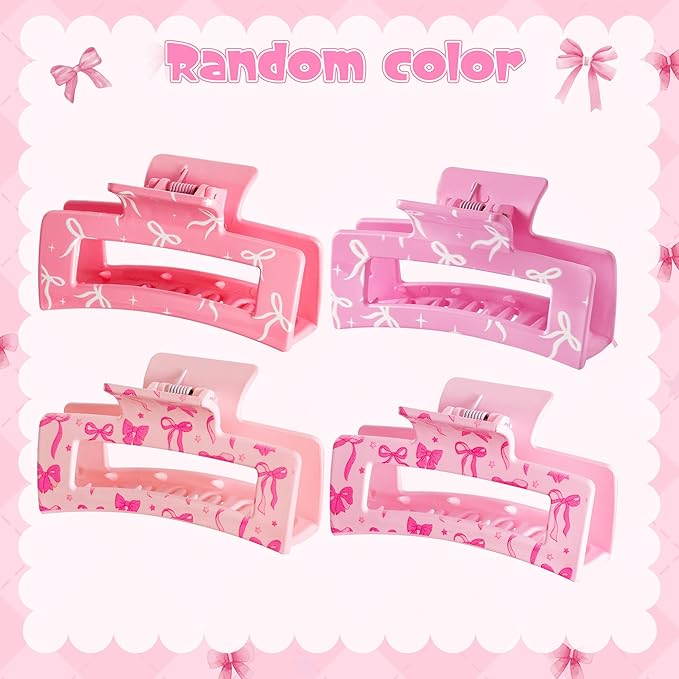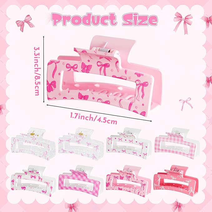 - COQUETTE PINK BOW HAIR CLAW CLIPS: Our coquette pink bow claw clips comes with 8 design, featuring bow patterns, perfect for adding a touch of elegance to your look on daily life.