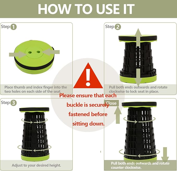 - 【PREVENT SELF-OPENING】When the folding stool is stowed away, the snap designed on the stool cap will work to prevent the stool from opening on its own. The non-slip base ensures the stability of this foldable stool, providing you with a safe and comfortable sitting position.