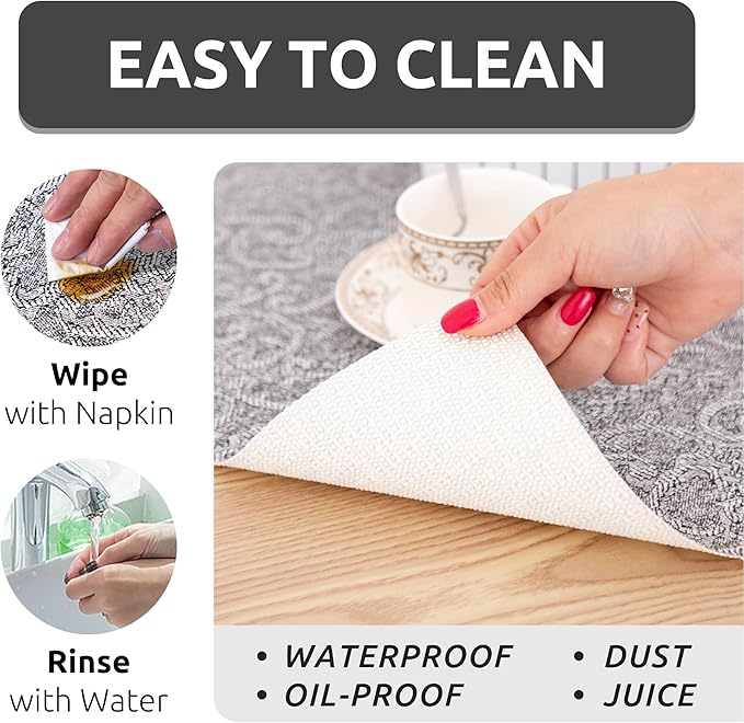 - Execellent Material - The shelf liners are made of excellent PVC material that is non-adhesive and non-slip. To reduce slipping and bunching in your drawers or cabinet shelves, we have added a non-slip texture design on the bottom that increases friction, keeping the liner in place on surfaces and preventing items from moving.