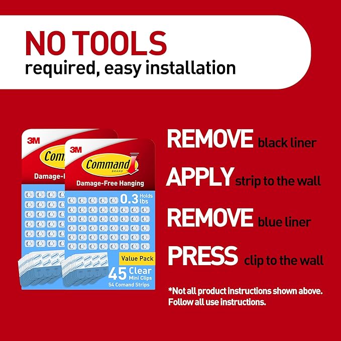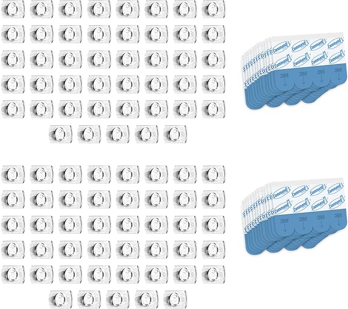 - ONE LIGHT CLIP FOR EVERY TWO FEET OF LIGHTS: One package of Command Indoor Mini Light Clips includes 90 clips and 108 small Command Strips; use one light clip for every two feet of lights
