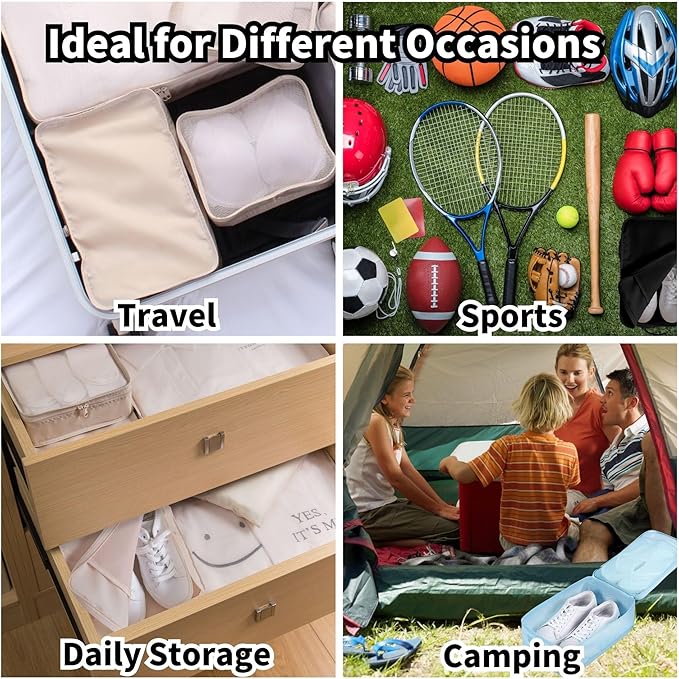 - Spacious Main Compartment – Fits 1 pair of shoes (up to size 10); mesh pocket stores slippers, socks, or small accessories.
