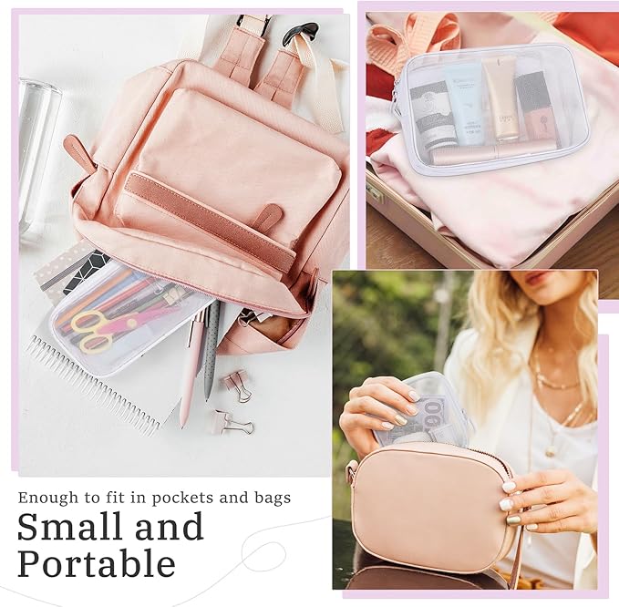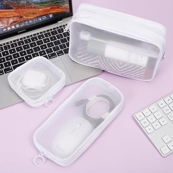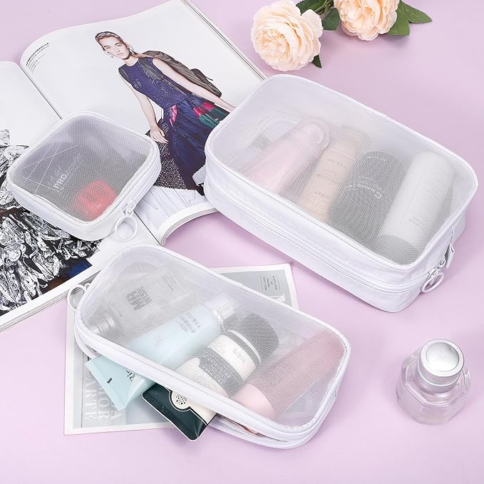 5 Pieces Mini Zipper Nylon Mesh Pouch, Mesh Cosmetic Bags Makeup Bags, Multipurpose Travel Toiletry Bags for Office Supplies and Travel Accessories (White, Assorted Sizes)