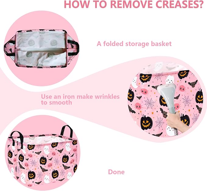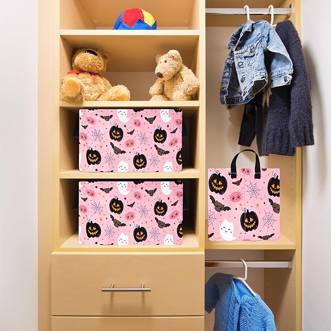 Rec Halloween Ghost Storage Basket Box Hamper Collapsible Organizer Bin Gift Shelf Baskets for Home and Kitchen Storage.