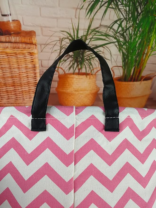Pink Round Laundry Hamper Storage Basket Bins Clothes Nursery Hamper for Home, Gift Storage Bins with Handles