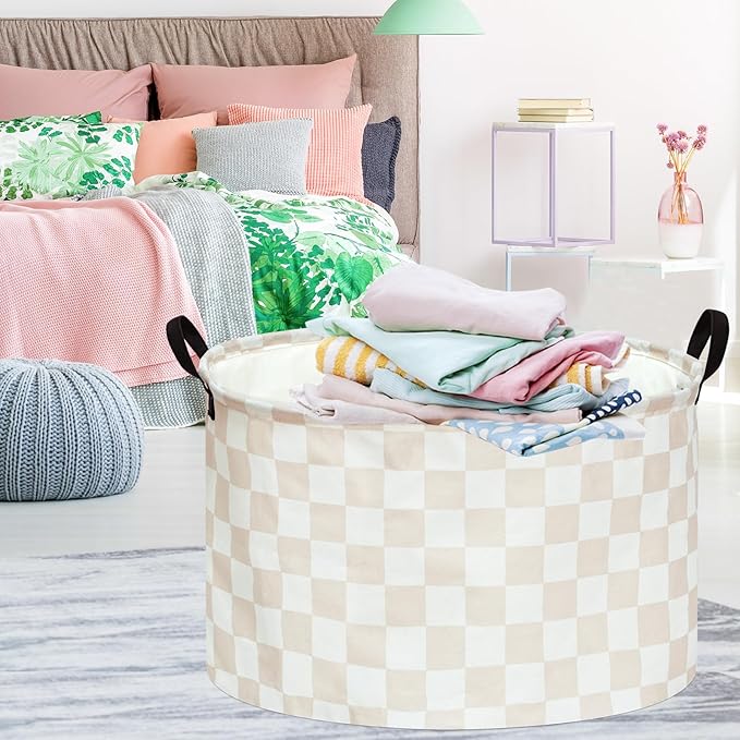 Checkered Storage Basket Extra Large 80L Kids Hamper Baby Laundry Basket Waterproof Toys Car Organizer Collapsible Canvas for Home/Dorm/Pet/Office/Closet/Shelf/Gift Baskets