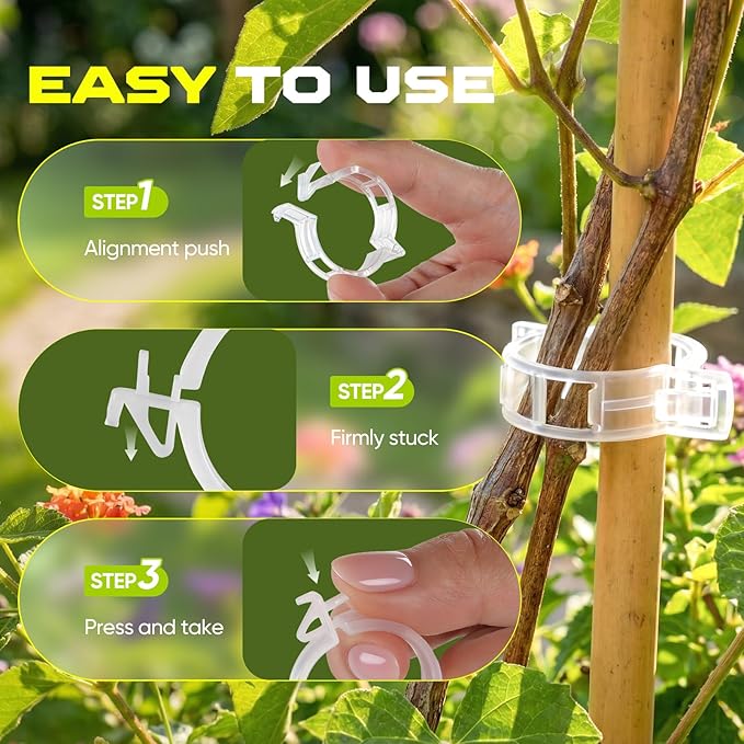 - 【Garden Helper】Garden clips can straighten plants, prevent fruits from bending branches or vines, and reduce physiological loss of plants. Reduce the manual binding time by 90%, with a single clamp load-bearing capacity of up to 3kg without breaking, allowing the vines to naturally spread out while maintaining an attractive shape.