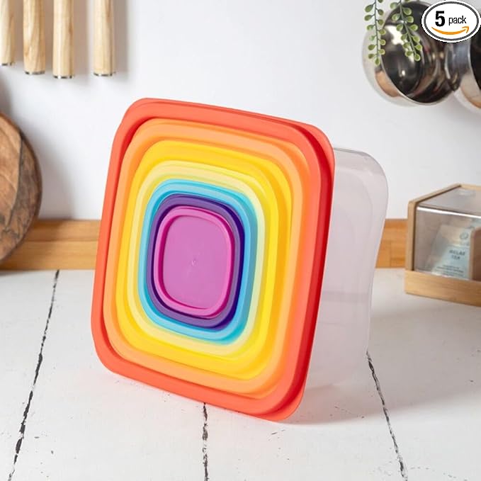 KARO DAILY - 5-Pack Food Storage Containers with Colorful Lids โ Stackable Plastic Storage Boxes, Airtight & Multi-Purpose Organizers for Kitchen, Pantry & Home